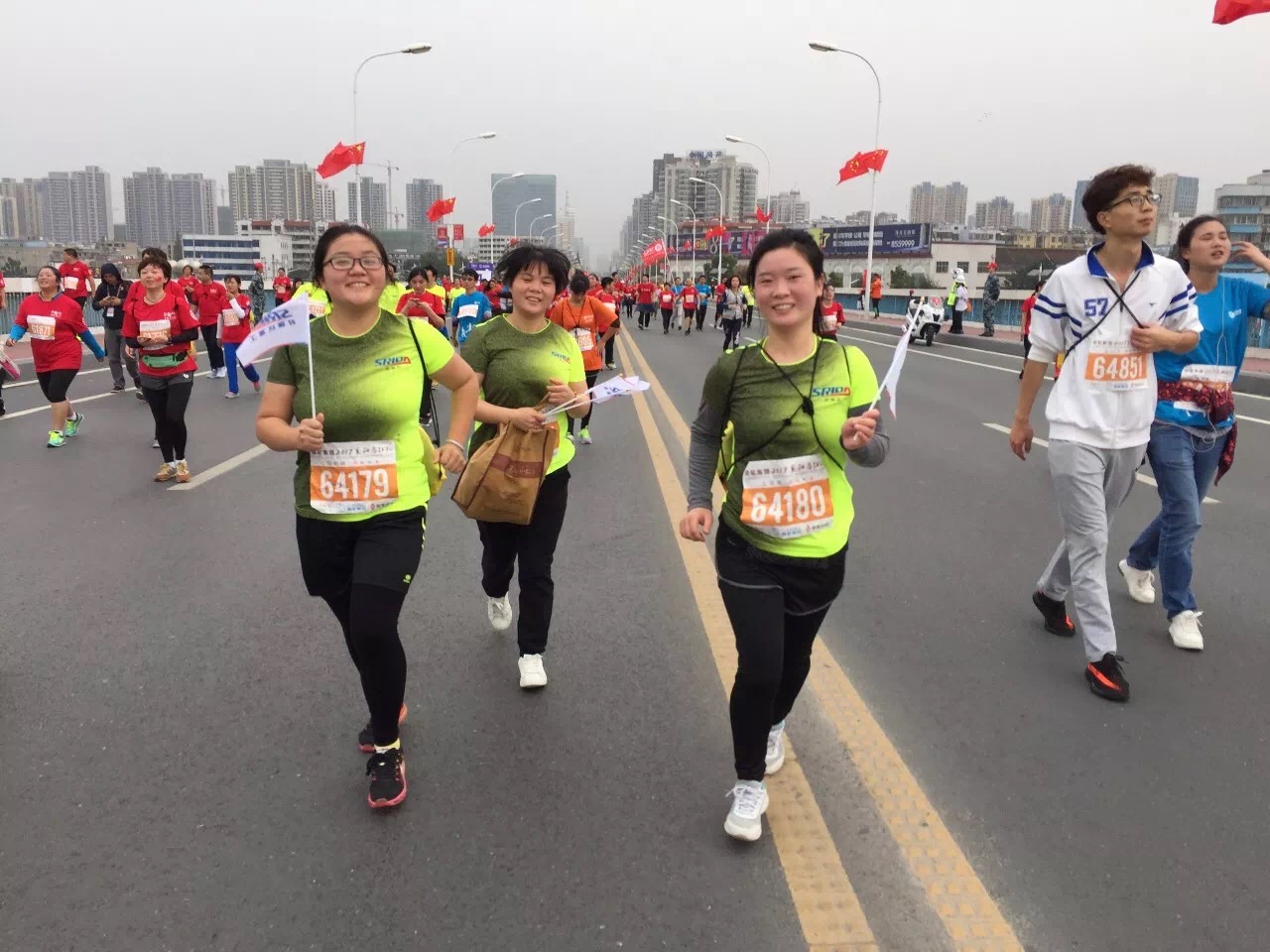 半岛电竞(中国)半岛有限公司官网员工代表共56人参加了此次的“襄马”活动。其中参加全程马拉松(42.195KM)一名,半程马拉松(21.0975KM)四名,健康跑(7KM)49名,后勤人员2名。从报名到比赛参赛员工在经历了一个多月的等待,终于迎来了此次盛会,参赛员工兴奋地奔跑在美丽的赛道上,飘扬的公司司旗像一艘小船流淌在欢乐的长河中。